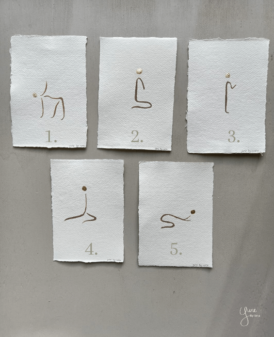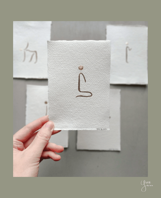 Een handgeschilderde print met een detail van goudfolie op handgeschept papier.
